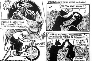 The picture of Vladek, now an old man bent over as he rides his exercise bike is superimposed on a movie poster of Valentino, harem girl swooning in his arms and the images (by collapsing narrative time, i.e., the linear plot) add a vertical dimension, a depth that in fact contains the real story: the fleeting nature of life, the transience of beauty, of youth, of vigor, the sheen of life that is so easy while in comfort to identify with life.... It speaks of the horror that always seems to be waiting below the surface by making a grotesquerie of the surface. Add to this the fact that Vladek, Valentino, and the girl are all drawn as anthropomorphic mice in a book where Nazis are depicted as cats and the drawings and words play off each other in yet a third way: they call into question received ideas of humanity; they illustrate and thereby make present the Darwinian subtext that informs the action of this novel about vermin to be exterminated and the predators who do it. Indeed, this fusion of animal imagery and non-fiction Holocaust narrative can be seen as a little opera on the page about the palimpsest each culture makes of its own habits of thought acting out lines of thought that have been so thoroughly absorbed that they become a kind of nature as a priori to reason as the alphabet is to writing. In Landscape and Memory, Simeon Schama reminds readers that to see the "ghostly outline of an old landscape beneath the superficial covering of the contemporary is to be made vividly aware of the endurance of core myths." His example is the contemporary appearances of the Virgin to a cleaning woman near Madrid. According to Schama, these visitations are written upon the legacy of the Most Catholic King of Spain, Philip II who built El Escorial, the monastery/tomb where they occur. El Escorial is itself a manifestation of "centuries of associations of apparitions of the Virgin seated in a tree whose Eastertide renewal of foliage symbolized the Resurrection" a rewriting, of course, of "pagan myths that described old and hollowed trees as the tomb of gods slaughtered on the boughs and encased within the bark to await a new cycle of life." In Maus, Darwin, Galton, and Malthus seem to inform every panel of Vladek's life, a period where Darwinian logic flowered in a variety of eugenics programs throughout the world: at State Fairs in America, Fitter Family contests were staged in which whole families were judged like cattle (a layer of writing that survives as the Ms. America contest); based on the scientific IQ testing of immigrants at Ellis Island, H.H. Goddard found eastern Europeans to be feeble-minded. If these would-be immigrants were allowed into the country, they would "clog the wheels of progress," as Goddard put it. Basing its actions on voluminous amounts of research with the same conclusion, Congress passed the U.S. Immigration Restriction Act (which wasn't repealed until decades after its raison d' être had passed out of scientific fashion), keeping out almost all of the 220,000 German refugees who applied for visas to the US in 1938. Result: almost all of the visa applicants were gassed by 1943 except, of course, those who were granted a non-quota visa because the special skills they possessed were needed in America. One of these was Dr. Gustav Aschafenburg, a genetic researcher whose own scientific narrative advocated the sterilization of the "vermin of the nation: the chronically ill, the criminal, the handicapped, the elderly, the alcoholics, the homeless and other 'incompletes,' i.e., burdens on society" until he was forced to flee the Nazis. The fact that Dr. Aschafenburg was himself Jewish brings up the question, What does it mean to ask, 'How much did the average German know?' How much do we? Of course, there was nothing hidden about the assumptions behind Mein Kampf (My Struggle), a title which Hitler derived directly from the Darwinian phrase, "survival of the fittest." It was spelled out explicitly "Whoever is not bodily and spiritually healthy and worthy shall not have the right to pass on his suffering in the body of his children" even if the factor necessary to translate this proclamation into gas chambers was essentially an aesthetic judgment of "healthy" (a judgment call that, presumably, Dr. Aschafenburg did not agree with). Or perhaps another entry into this question is to ask how people who on the whole are well-intentioned can allow starvation to become as common as the McDonalds restaurants, diet colas, and laxatives hawked in between images of famine on network television. Hindsight is always 20/20. Especially when directed at another (and thus makes for good exemplary cases). The marriage of Darwinian assumptions and political will that set the story of Maus into action illustrate grimly how ways of speaking bring into existence ways of being, ways of acting, even unto writing into existence the institutionalization of murder, starvation and slavery. Even unto re-writing the self as an animal driven by little more than the instinct to survive. The frame of the book, i.e., Vladek telling his story to Spiegelman who is creating the story of Vladek telling his story to Spiegelman, underscores without saying that a History (or a people) that doesn't consider the way it is written, that takes documents, including itself at face value, is a naïve history (people). The same might be said of literature a system of knowing. The inherent surface nature of the image/text, the insistence on its own methods and materials through surface, through corporeality, makes it seem particularly suited to our contemporary climate of contentious reading. The rise of the image, including the image text, as texts have always done, helps make us what we are through the practice of their creation and consumption. In an image-driven culture, they allow a text to casually draw attention to patterns of thought that have been so well traveled they have achieved the status of Nature. Or els