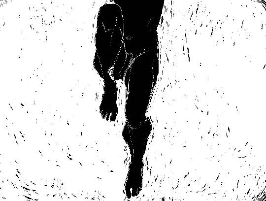 | When nobody else was around or willing to sit still for me, I drew whatever I could see of myself: my feet, for example; my legs. What my eyes showed me, though, looked very strange on paper. My dinky, knobbly feet were hitched to spindly ankles that swelled like a bellows to the knee, then widened even further to my thighs. My massive, conical thighs were like two funnels jammed to the bottom of a grain hopper, which was my squarish torso, big as a house. I was a funky headless homunculus with linebacker shoulders and Tinkerbell toes. It was the truth (from my perspective), but what use was it to art? In my renderings of all-I-could-see, I had better leave myself out, or regard myself in a mirror, at a safe distance. Look too closely, I noted, and you will see monsters. Realism, and possibly reality itself, is reticence and fudging it. I was a scholar of legs, carrying on my investigations down on the bricks or flagstones, among the grown-ups' feet. Here I am with my jacks, my tops, my patterns in the dirt. Around me are the tree-trunks of legs, with their tropical growths, the parasitic vines of their varicose veins, the gorgeous locoweed of burst blood vessels. The wild hairs standing off the stretched, dessicated skin, or the coarse black stubble, hard as jet. My grandfather's knobbly knees were crude and overlarge, like the club of a cartoon caveman. Feet were battered arcane shapes, polished in places to patent leather. I looked at my own body: flesh still growing is almost spirit, it clasps the bone, doesn't hang from it, you hardly recognize it as a substance. Grown-up flesh has more and more in common with sand, bark, old canvas, rust and mud. We resemble inanimate things more and more, until one day we become one. But at the time, casting judgement with my jacks, I wondered why they had let themselves come to such a pass. Flesh was thought, corrupt thought corrupted flesh, but will could strain and clarify both thought and flesh. That was my despotic fantasy. At what point did their attention lapse? I wouldn't let that happen to me. |