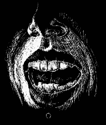 I am always teething. My gums are so sensitive that any time I even think of them (as now, writing) I want to fiddle with them. My tongue pries at the little points where my gums tuck between adjacent teeth. I like to floss or pick my teeth because I like the pain, and the more it hurts the more pleasure I get from it, so I saw and dig with ever-increasing brutality. My gums start to bleed. Every so often I stop to gingerly clack my jaws together. There is a metallic taste in my mouth. Behind the last tooth on my lower jaw on each side there is a chubby flap of skin where it seems another tooth is always on the verge of coming in, and where even poking with my tongue gives me some pleasure. But the sturdy smidgens can take a lot more abuse. Sometimes, though I know I'll regret it, I take a spoon and poke it under the flap, prying up until I feel the fibers strain and pop. I wrenched out my baby teeth with similar relish. Later, when the riot is over, I feel both amused and ashamed, my gums swollen into caricatures, so sore I can hardly chew.The first teeth I drew belonged to monsters and were shaped like long, tapering V's. The first human grin I drew also looked like a monster's. The problem was that if I outlined each individual toothÑas an impulse toward accuracy instructed me to doÑthe smile seemed ghoulishly crowded. What's more, teeth are all different, and to stuff a smile with a row of identicals threw a drawing subtly out of whack, yet to try to sketch the idiosyncracies of each tooth seemed as finicky as painting a portrait of every single leaf on a tree in the background. I had seen ads in which the teeth were painted as a single bar of white. That looked better at a casual glance, but viewed more closely it looked like the happy surfers and smokers had a mouth guard clamped in their jaws. Teeth made me wonder what realism really was. When you drew a tree you didn't draw each leaf, but only because, I thought, it was too huge a task. But with teeth it seemed there was such a thing as too much accuracy. Realism lay slightly short of the exact copy. This surprised and unsettled me. |