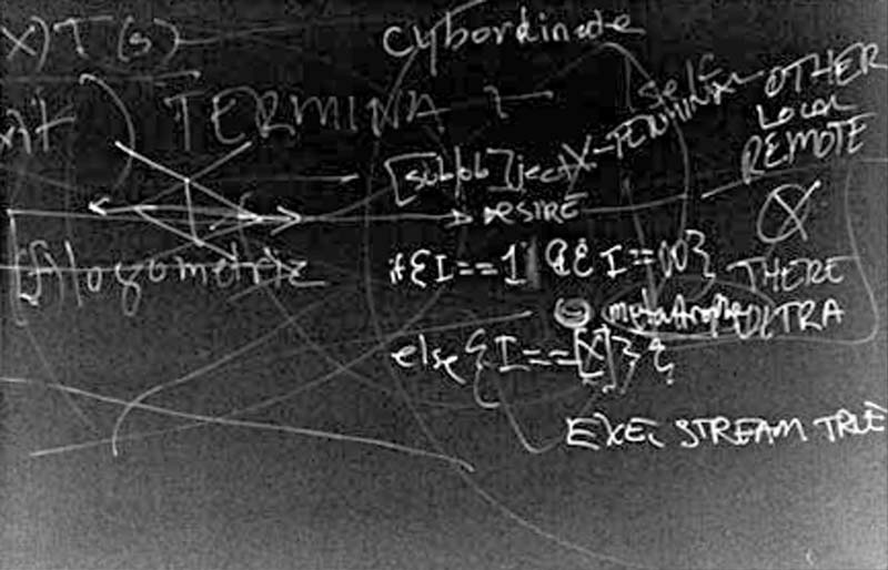 | ...re:mote and re:moved from the base, no longer moving at a sleepy crawl, time is in a constant now, between the bracketed thens of past or future. I wait, I wait. I re:turn. I return trans|formed. The re:turned inVention, in my space, is the mechanized product of a local and re:mote collaboration -- more than me, I am {now, in the f.logometric moment, the [N] of any/every bracketed segment of time}. The inVention at the screen, my screen, my face looking back at myself is the signal of successful attachment. Now, though body remains here, I am there... (If and) when attachment is no longer required -- when the apparatus is re:internalized and made organic -- we enter an other life where the body is indistinguishable from the cipher and hum.andity is perceived as part of the natural world -- even in exe.stream exe.tension we are bound to the mother-generator. Concerns over cyborganization as a political formation will become dull and pointless, but are sure to rise again -- as a mediating product of this very boredom... |